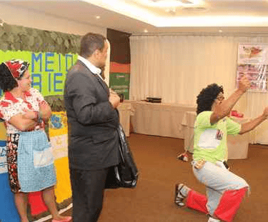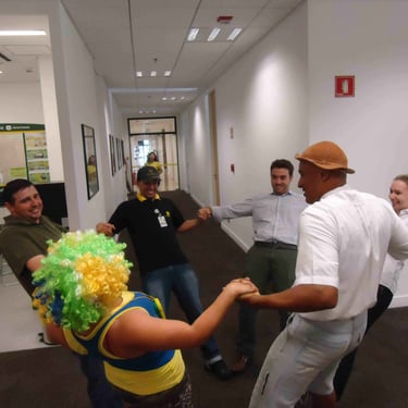 divertidos irão nos setores da empresa, fazendo pequenas intervenções de 5 a 15