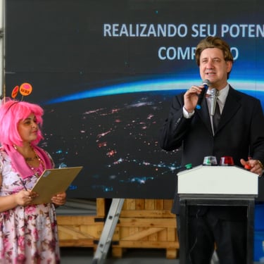 apresentação. De uma forma dinâmica e envolvente, o apresentador e sua ajudante de